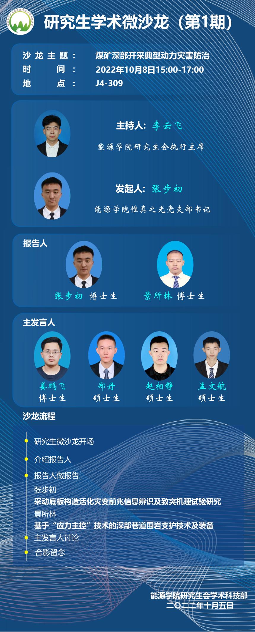 10月8日,由h视频-国产h视频 主办,h视频 研究生会承办的第1期研究生学术微沙龙“煤矿深部开采典型动力灾害防治”在J4-309成功举办。本次学术微沙龙活动邀请惟真之光党支部书记张步初、博士生景所林做主题报告,h视频研究相关方向的博士生和硕士生参加,活动由研究生会执行主席李云飞主持。