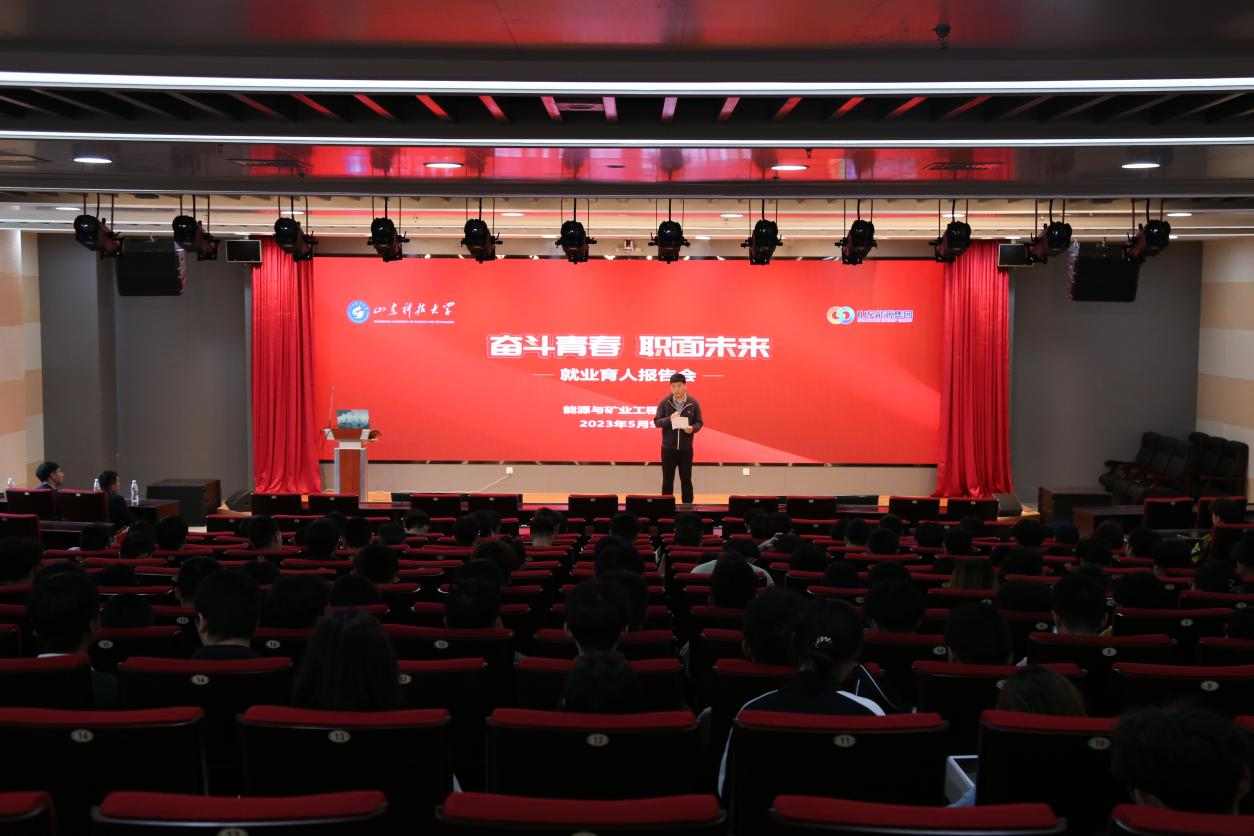 5月9日,为深入学习贯彻党的二十大精神,落实党中央、国务院、山东省委、省政府以及h视频 关于促进高校毕业生就业的决策部署,引领学生科学开展职业生涯规划,h视频 邀请山东能源集团柳研青、白昌赫和李进三位优秀校友代表来校举办专题报告会。h视频 辅导员宗彩建主持,采矿工程专业全体同学参加。