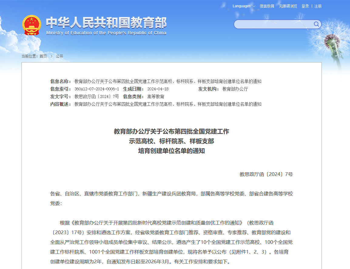 近日,教育部印发通知,公布了第四批全国党建工作示范高校、标杆院系、样板支部培育创建单位名单。h视频 资源工程系党支部入选全国党建样板支部。这是继矿山灾害预防控制重点实验室党支部后,h视频党委获评的第二个全国党建工作样板党支部。