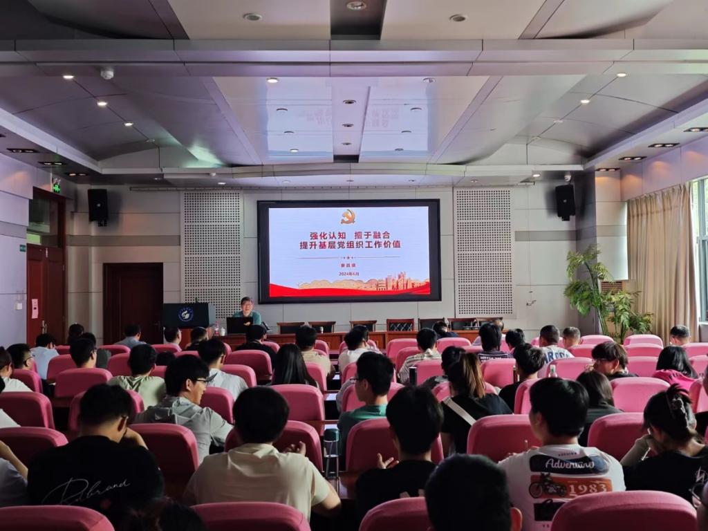 为推动党纪学习教育深入开展,切实解决基层党建工作存在的突出问题,打造h视频基层党建工作特色品牌,6月4日,h视频 党委举办党务工作者和党员专题教育培训班。学校机关一党委书记兼组织部副部长秦昌盛受邀作《强化认知 擅于融合 提升基层党组织工作价值》专题报告。h视频党支部委员、党员代表参加学习,报告会由h视频党委副书记兼副院长许琳主持。