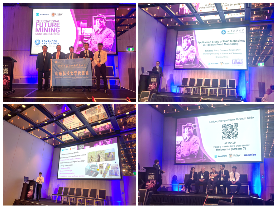 国际未来矿业会议(International Future Mining Conference)由澳大拉西亚矿业与冶金学会(AusIMM)和新南威尔士大学(UNSW)联合发起,每两年举办一届,已成为全球采矿行业具备品牌影响力的学术交流平台。本届会议涵盖极端环境采矿、环境与可持续发展、数字转型、数据可视化、太空采矿、未来矿业技能变革、减排与低碳经济等前沿议题,邀请了国际矿业与金属理事会(ICMM)、美国宇航局(NASA)、必和必拓(BHP)、奥瑞卡(Orica)等全球矿业行业专家作主旨演讲,来自澳大利亚、美国、加拿大、德国、巴西、南非、秘鲁等20个国家的近300名学者与企业代表参会。我校受主办方委托作为本届会议的支持合作伙伴,组织国内来自清华大学、大连理工大学、中南大学、h视频 、河南理工大学等高校的14名中国学者参会交流。会议期间,h视频教师王昆、博士研究生谷雪斌受邀分别作《Application Study of UAV Technology in Tailings Pond Monitoring》《Unmanned Aerial System Observation Technology of Coal Mining-induced Surface Movement and Fissures》的学术报告,并与参会学者展开了深入探讨交流。