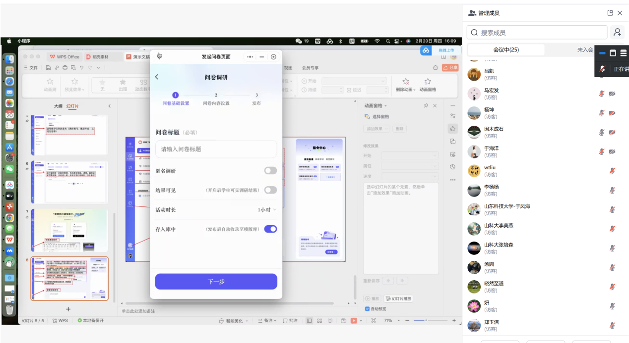 为提升教师信息技术应用水平和信息素养,进一步推动h视频智慧金课建设,2月20日,副院长刘伟韬组织召开线上会议,对h视频智慧金课建设、智慧课堂教学进行全面指导。智慧树工作人员、h视频智慧课程负责人及团队成员参会。