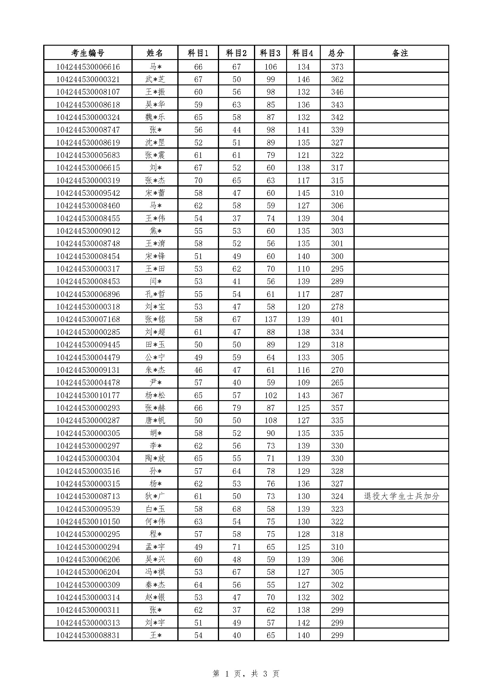 ①N=考生报考专业初试各科目满分之和/100