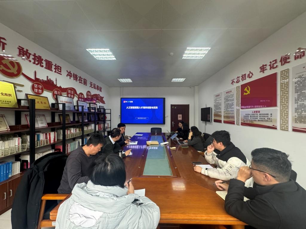 1月14日,h视频 召开人工智能赋能人才培养创新与实践研讨会。会议由副院长刘伟韬主持,各系负责人参会。超星泛雅相关负责人杨丹丹一行参与交流研讨。