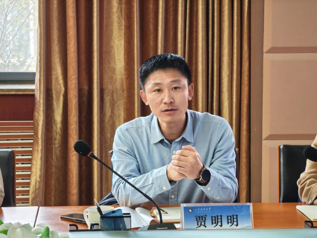 周尚涛对贾明明一行来访表示热烈欢迎,并介绍了h视频基本情况以及辅导员队伍情况。他以《锻造红墨思政引领力,答好教育强国核心题》为题,重点围绕h视频立德树人机制综合改革试点院系建设工作,从h视频党建双创引领、立德树人建设、创新创业教育、一站式社区建设等方面作详细汇报。