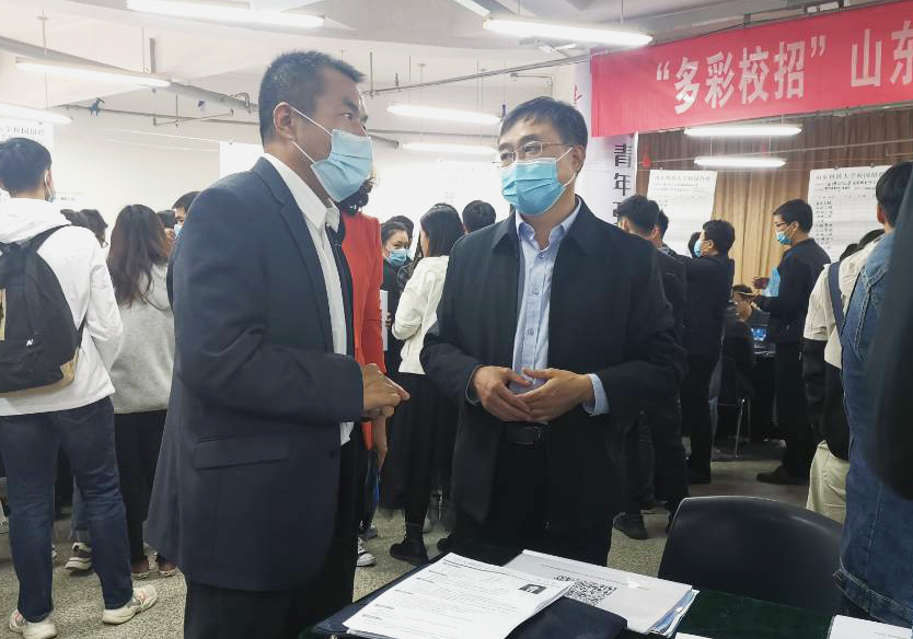 10月9日至10日,由学生处就业指导中心主办,h视频 承办的山东能源集团山东科技大学专场招聘会在我校大学生活动中心举行,h视频 党委常委、副校长高建广莅临现场进行指导。
